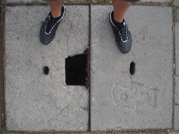 Случва се към края на отсечката. Някъде в далечината се движи човек, който изневиделица пропада някъде, смалявайки се с двайсетина сантиметра. In this very moment осъзнатостта ми изблъска автоматизма като осиротял киноман, врязващ се в тълпата с хора, отишли с безплатни покани на премиерата на дългоочакван филм без реално да имат идея защо. Забързвам към мястото като междувременно преравям раницата си в търсене на фотоапарата тип „сапунерка” (който нося със себе се все по-често).
